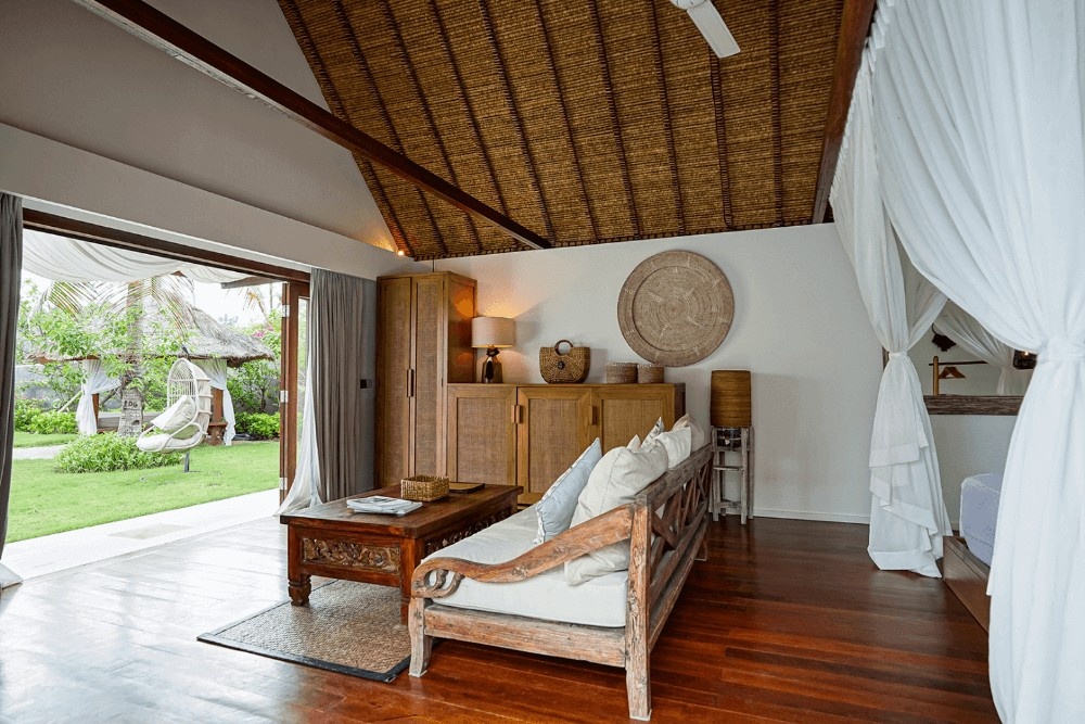 The Deluxe Private Pool Villa at Pondok Santi Estate is a secluded 235m² retreat, featuring a 12-meter private pool, a spacious white stone terrace ideal for dining, and a 200m² tropical garden with sun loungers and a queen-size gazebo. The 35m² room includes a king-size bed with elegant mosquito nets, and an open-air bathroom with dual rain showers.Amenities encompass individually controlled air conditioning, a mini fridge, coffee and tea-making facilities, Wi-Fi, a 60-channel television, direct dial telephone, and a safety box. Guests are welcomed with complimentary drinks upon arrival, and daily breakfast for two is included.