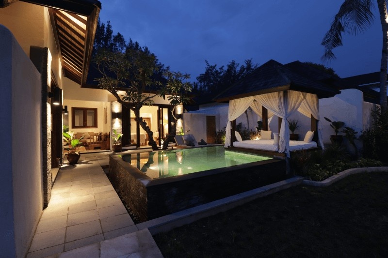 The 2-Bedroom Pool Villa at Pondok Santi, Indonesia, is a luxurious tropical retreat perfect for families or friends. Featuring two elegantly designed bedrooms, a spacious living area, and a private swimming pool, this villa offers the ultimate blend of comfort and exclusivity. Nestled in lush gardens with modern amenities and serene outdoor spaces, it provides a peaceful island escape just moments from the beach on Gili Trawangan.