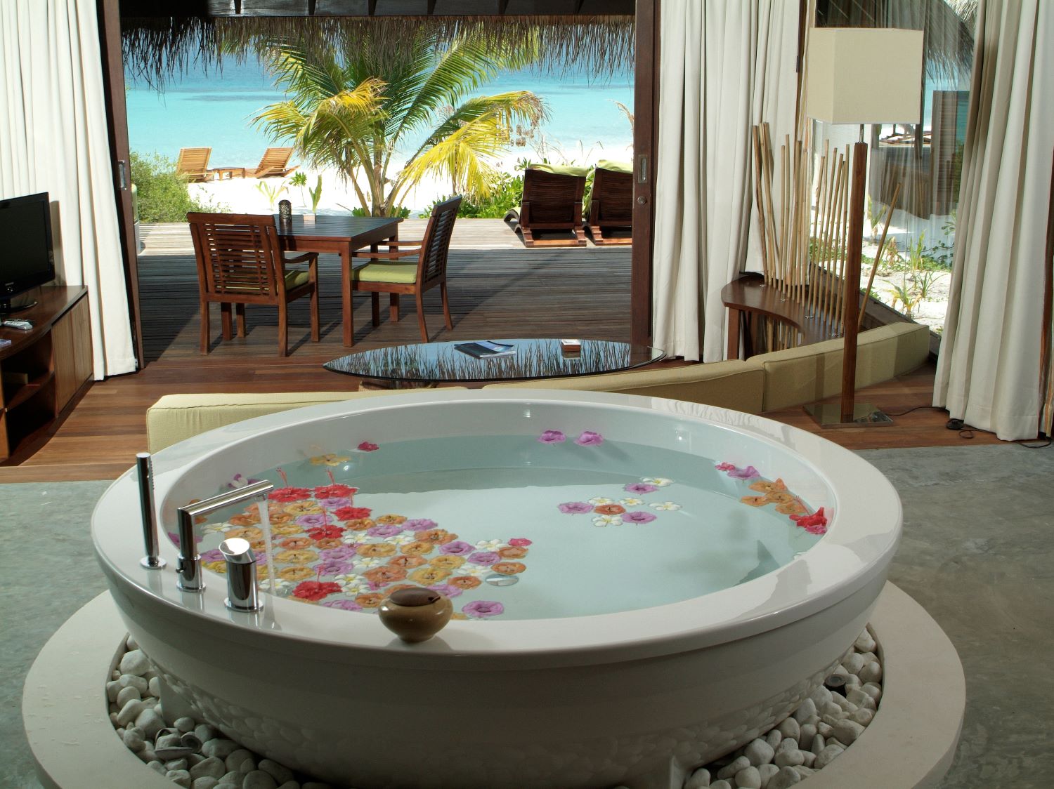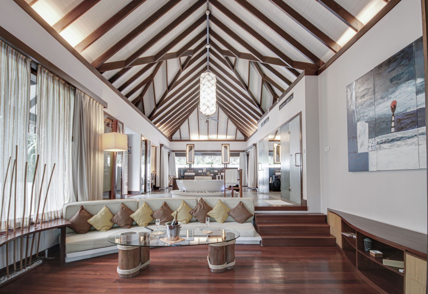 The Beach Villa with Pool at Coco Bodhi Hithi Resort offers a luxurious escape with stunning ocean views. This spacious villa features a private plunge pool, an open-air terrace, and direct beach access, combining modern comfort with natural beauty. Perfect for relaxation, the villa includes stylish interiors, a king-sized bed, and an outdoor rain shower, all set in a serene tropical setting. Ideal for couples or small groups seeking privacy and indulgence.