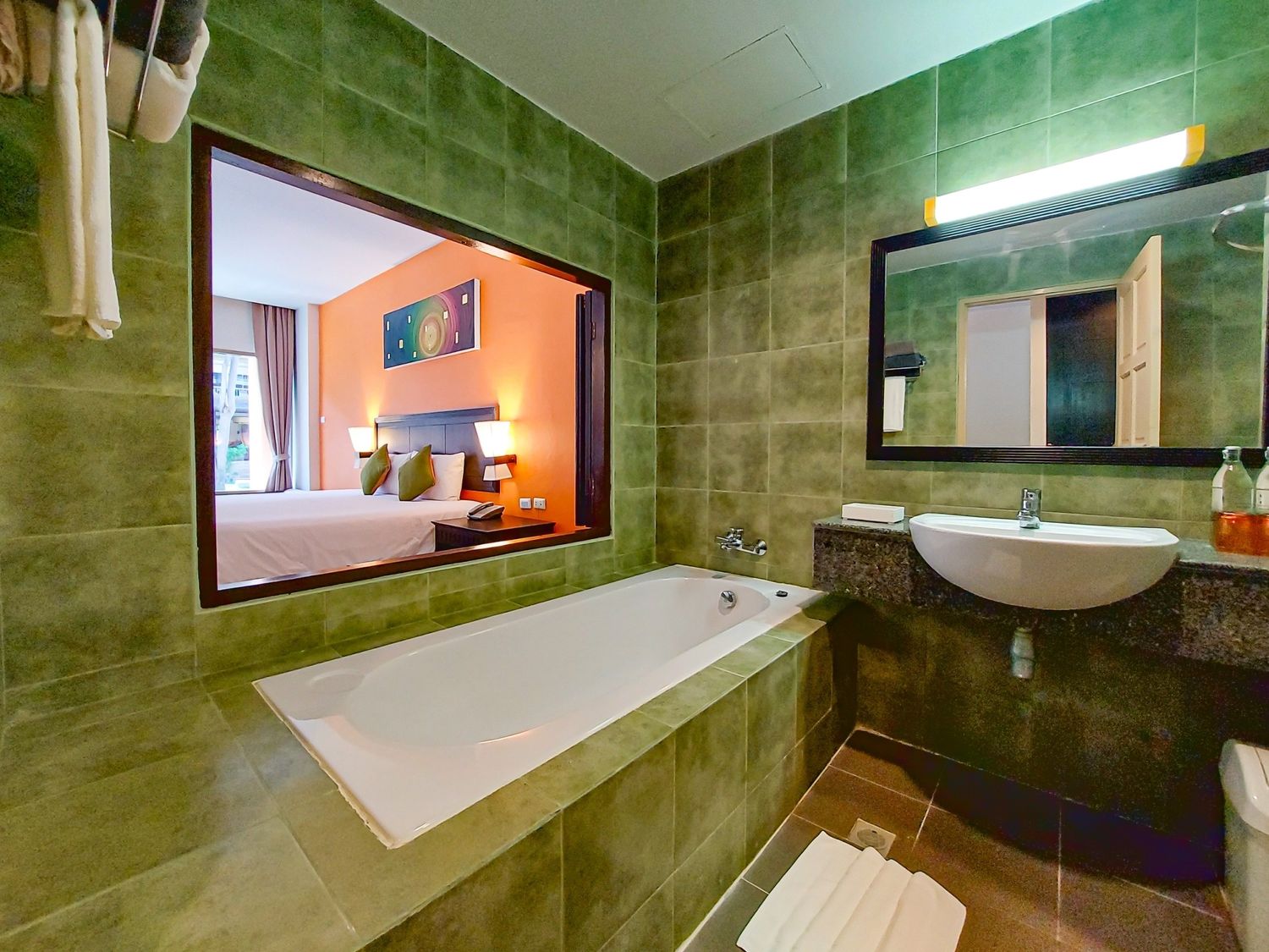 The Aqua Pura Room at Kata Sea Breeze Resort is a spacious 44 sq.m. room offering direct pool access from a private terrace. Designed for comfort and relaxation, it features modern amenities like air conditioning, a flat-screen TV, a minibar, and coffee/tea-making facilities. Perfect for guests who enjoy easy access to the pool, this room offers a peaceful and convenient retreat, just a short distance from Kata Beach.