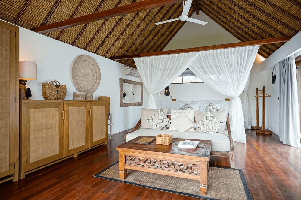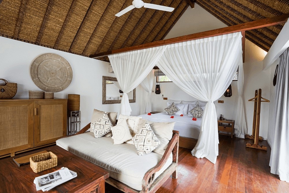 The Deluxe Private Pool Villa at Pondok Santi Estate is a secluded 235m² retreat, featuring a 12-meter private pool, a spacious white stone terrace ideal for dining, and a 200m² tropical garden with sun loungers and a queen-size gazebo. The 35m² room includes a king-size bed with elegant mosquito nets, and an open-air bathroom with dual rain showers.Amenities encompass individually controlled air conditioning, a mini fridge, coffee and tea-making facilities, Wi-Fi, a 60-channel television, direct dial telephone, and a safety box. Guests are welcomed with complimentary drinks upon arrival, and daily breakfast for two is included.