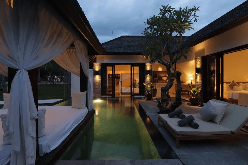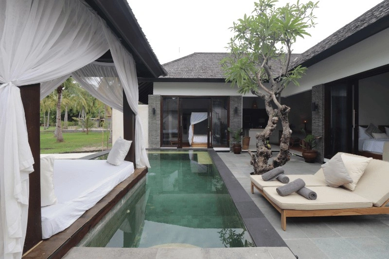 The 2-Bedroom Pool Villa at Pondok Santi, Indonesia, is a luxurious tropical retreat perfect for families or friends. Featuring two elegantly designed bedrooms, a spacious living area, and a private swimming pool, this villa offers the ultimate blend of comfort and exclusivity. Nestled in lush gardens with modern amenities and serene outdoor spaces, it provides a peaceful island escape just moments from the beach on Gili Trawangan.