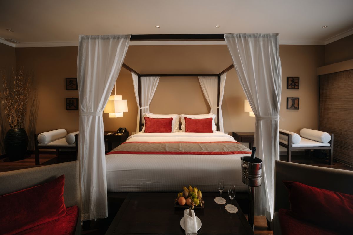 The Sunset Ocean Villas at Adaaran Select Hudhuranfushi are elegant retreats situated atop turquoise waters, offering modernist interiors and a range of exclusive amenities. Each villa spans 64 square meters and features a king-size bed, accommodating up to three adults or two adults and two children.