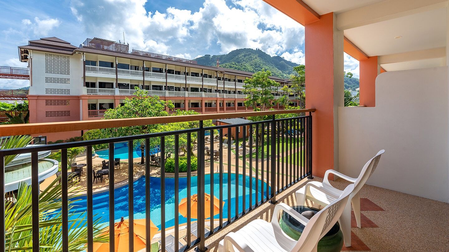 The Sea Breeze Room at Kata Sea Breeze Resort is a spacious 44 sq.m. accommodation featuring a private balcony with views of the garden, pool, or resort entrance. Designed for comfort, it includes modern amenities such as air conditioning, a flat-screen TV, a minibar, and a safety deposit box. The room is ideal for couples or small families seeking a relaxing stay just a short walk from Kata Beach.